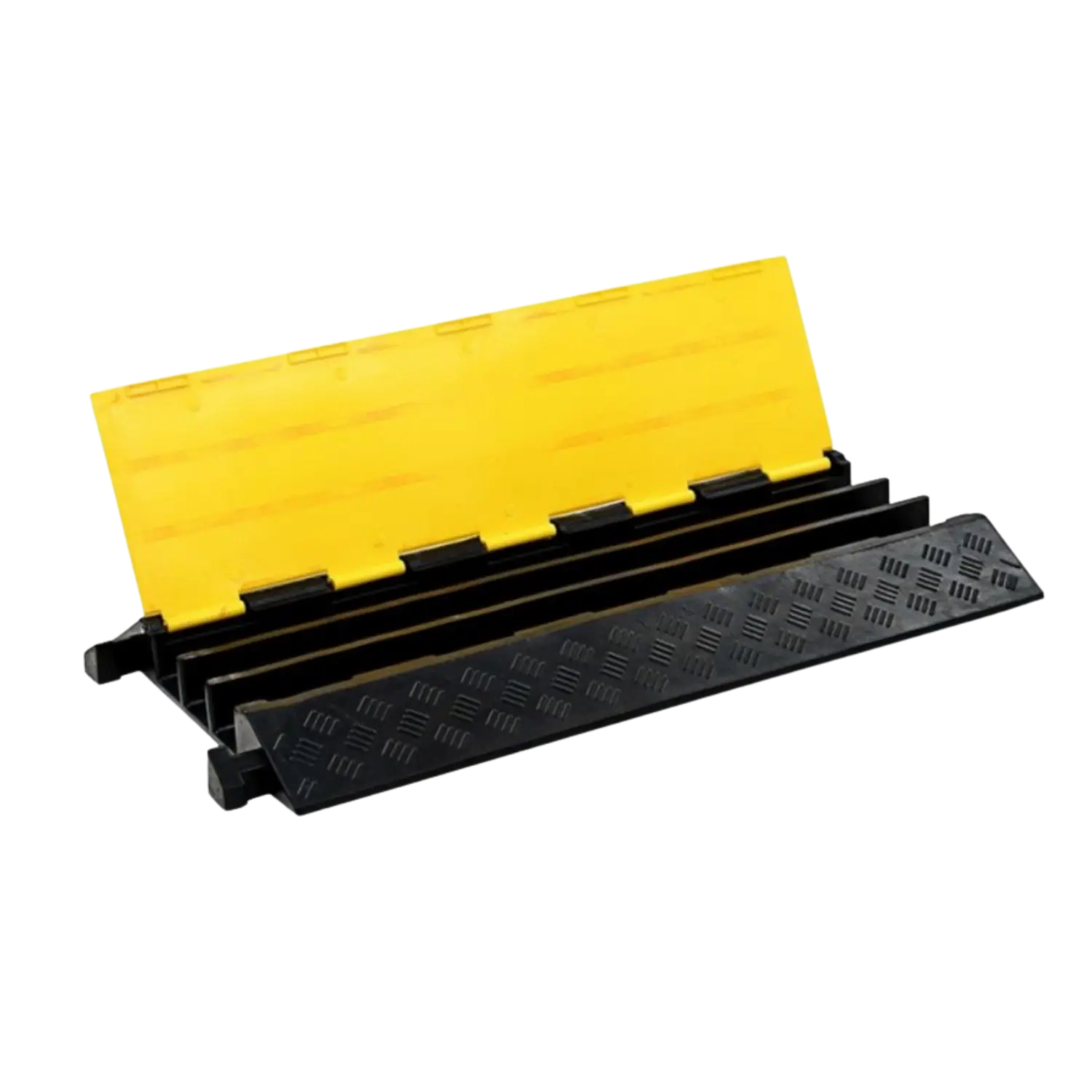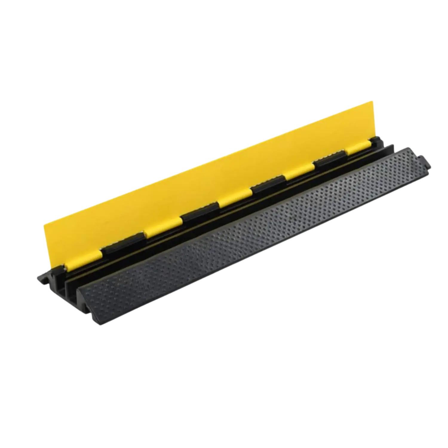 Vores gummi kabelbeskyttere giver pålidelig beskyttelse af kabler, slanger og mindre rør i områder med høj trafik. Produkterne fås i 50×250×1000 mm (2 kanaler) og 50×300×1000 mm (3 kanaler) og kan bruges både som midlertidige og permanente løsninger ved events, byggepladser, lagre, industrimiljøer, parkeringsanlæg og logistikområder.
